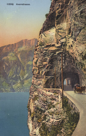Im Jahr 1865 eröffnet, musste die erste Strasse zwischen Brunnen und Flüelen die Steilhänge am Ufer des Vierwaldstätter Sees in zahlreichen Tunneln und Galerien überwinden.